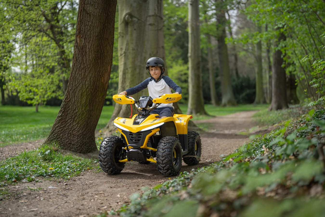Trebuie spus că acest vehicul cu patru roți este destinat copiilor și adolescenților care au deja experiență în manipularea mașinilor similare. Frânele cu disc hidraulice din spate sunt capabile să oprească rapid. În cazul în care cursa tânărului pilot scapă cumva de sub controlul său, ATV-ul se oprește automat datorită funcției de siguranță „Kill Switch” - prin deconectarea instantanee a cablului dintre pilot și ATV. Vehiculul schimbă viteza automat, așa că este necesar doar să treceți pe treapta înainte și să rulați la viteze de până la 35 km/h. Pentru a trece în marșarier, nu este necesară lovirea cu piciorul, doar comutați în marșarier și începeți să vă mișcați. Bateria plumb-acid de 48 V și 20 Ah garantează o autonomie de până la 30 km și durează 2,5 ore de funcționare non-stop. Datorită anvelopelor durabile de 16 inchi, suspensiei reglabile față și spate, ATV-ul este ideal pentru orice mediu. Anvelopele sunt tratate special, ceea ce face din cuvântul „pană” un concept necunoscut.