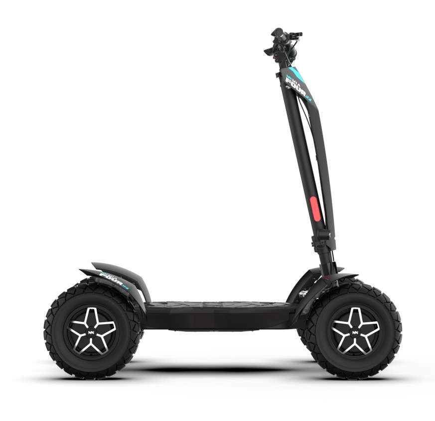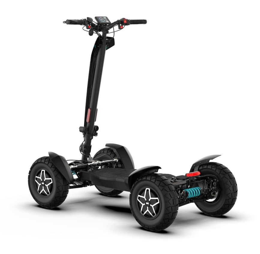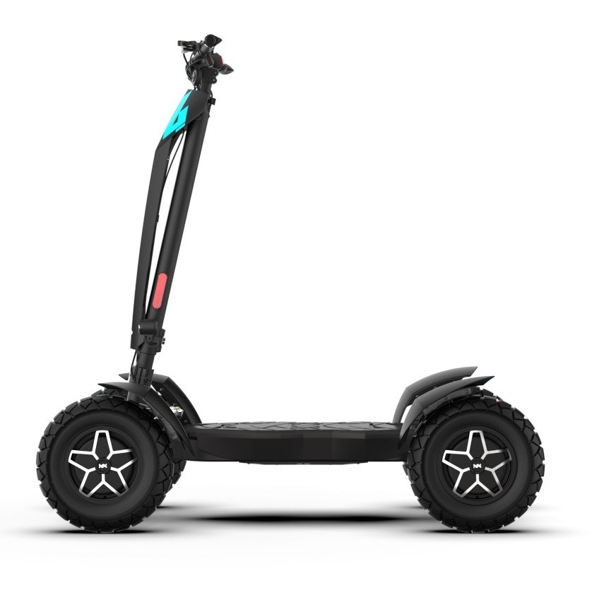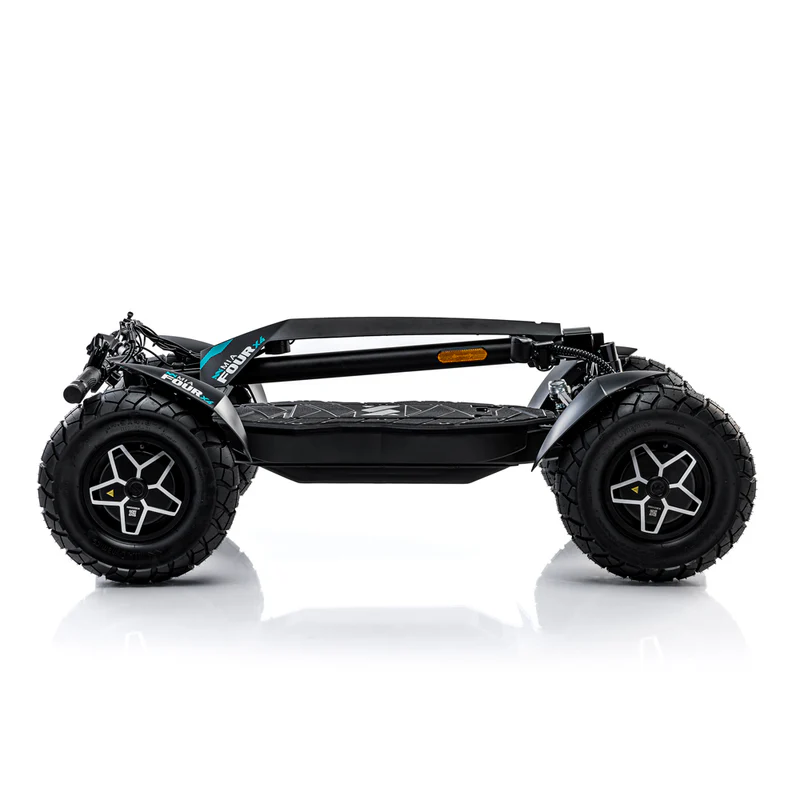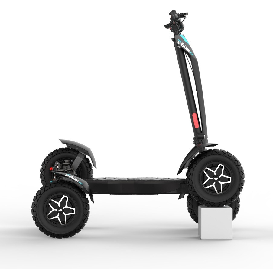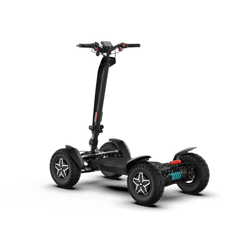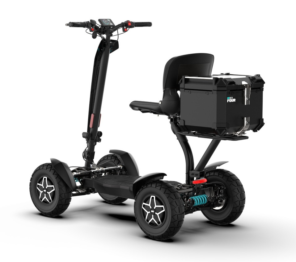 MIA Four X4 (4×4) – trotinetă electrică revoluționară cu tracțiune integrală, putere de 7200 W, autonomie de până la 120 km și o baterie robustă de 60 V / 35 Ah. Fiabilă, puternică și pregătită pentru orice teren.