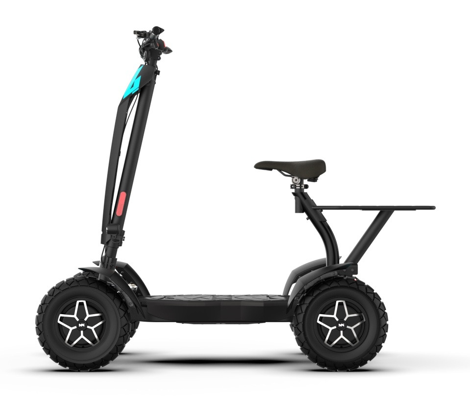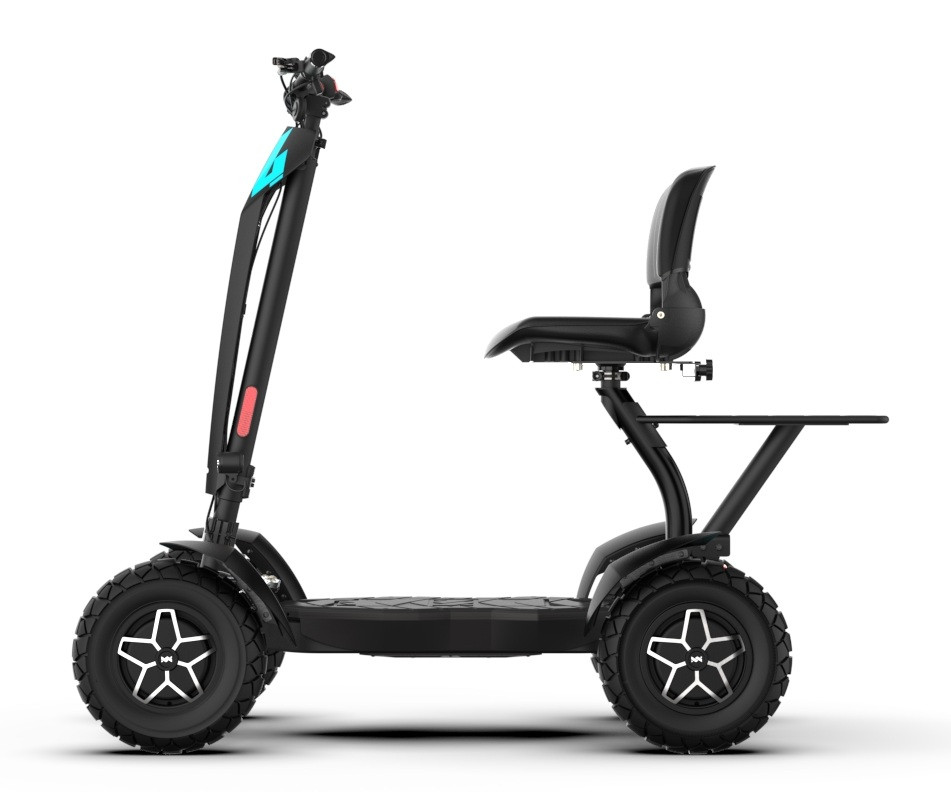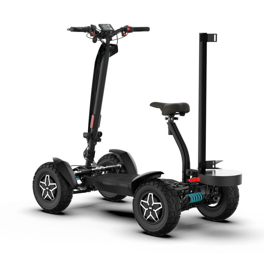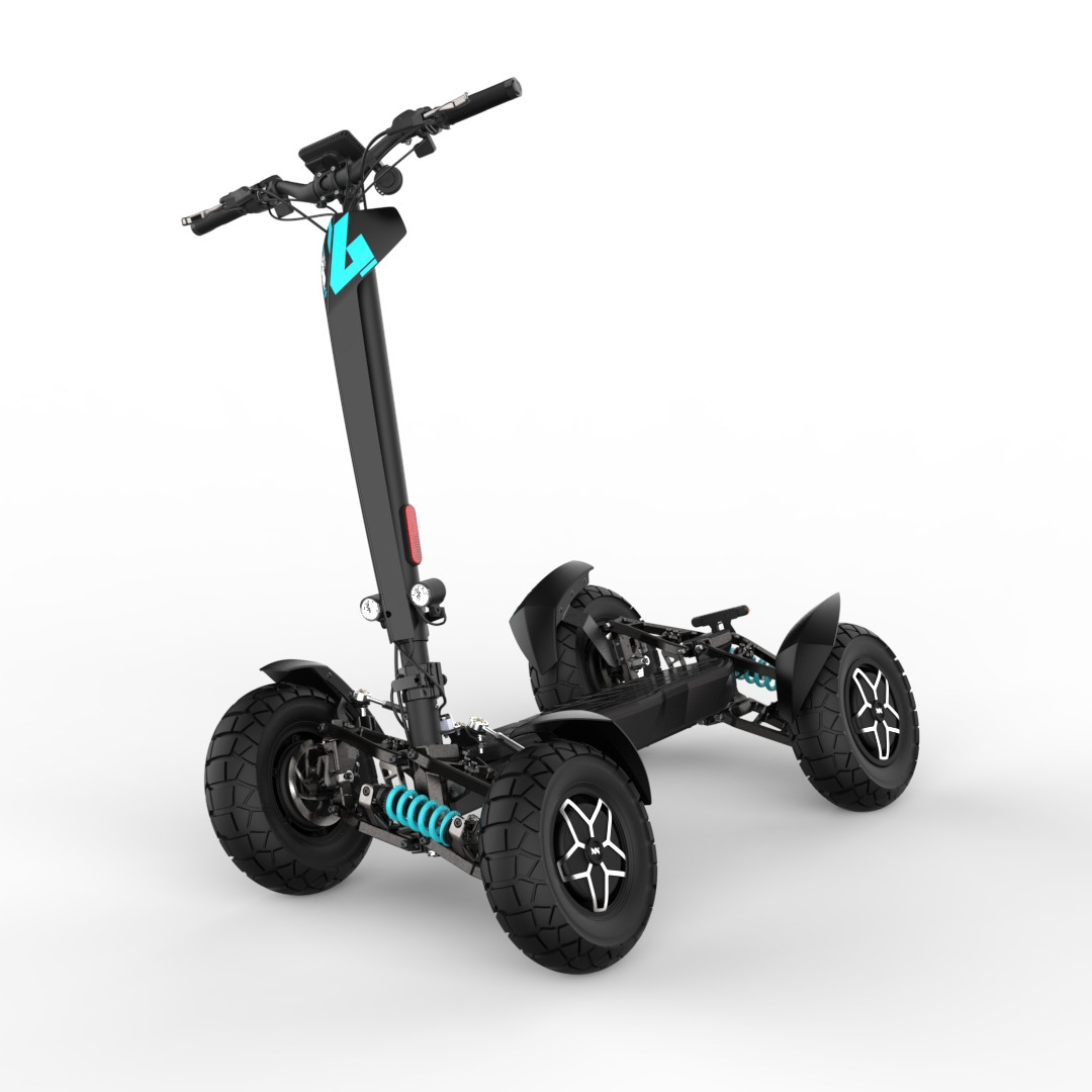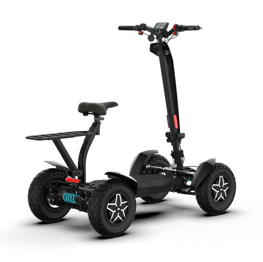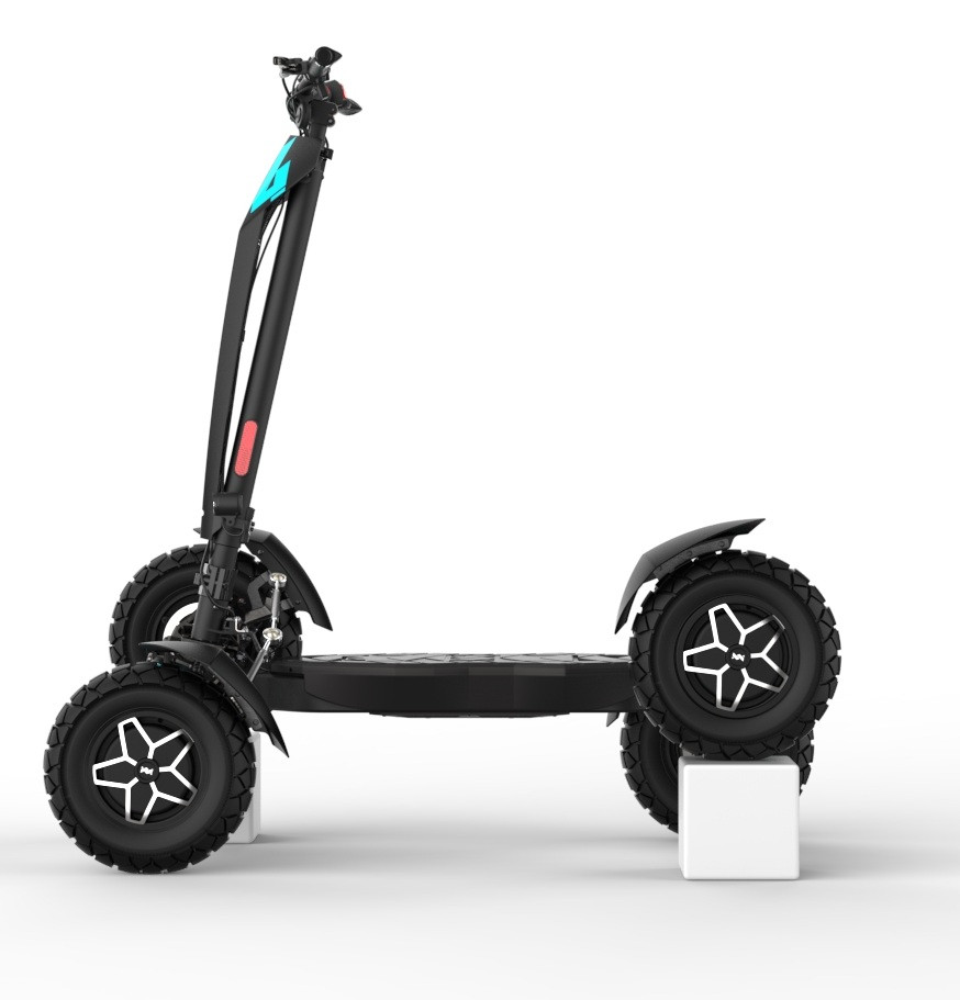 MIA Four X4 (4×4) – trotinetă electrică revoluționară cu tracțiune integrală, putere de 7200 W, autonomie de până la 120 km și o baterie robustă de 60 V / 35 Ah. Fiabilă, puternică și pregătită pentru orice teren.