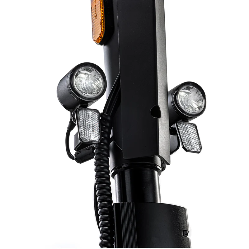 Cu o viteză de până la 72 km/h și o putere de 7200 W, siguranța este absolut esențială. MIA Four X4 combină stabilitatea mecanică cu protecția electronică. Cadrul rigid, cu un centru de greutate coborât și o bază largă, reduce riscul de răsturnare, în timp ce frânele hidraulice și suspensia independentă asigură un contact constant al roților cu solul chiar și în timpul frânărilor bruște. Trotineta este echipată cu lumini LED față și spate, semnalizatoare și stop, îmbunătățind vizibilitatea pe timp de noapte. Electronica include protecție împotriva supraîncălzirii, descărcării excesive și scurtcircuitului bateriei. Sistemul de gestionare a puterii limitează automat accelerația dacă senzorii detectează un unghi periculos de înclinare. Roțile de 14,5 inci oferă o aderență ridicată, iar lățimea totală (689 mm) asigură o poziție stabilă pentru rider. Cu o capacitate maximă de 150 kg, trotineta este potrivită pentru majoritatea adulților fără a compromite confortul. Elementele de siguranță sunt completate de benzi reflectorizante și de oprirea automată a motorului la apăsarea manetei de frână – un standard în categoria premium de vehicule electrice.