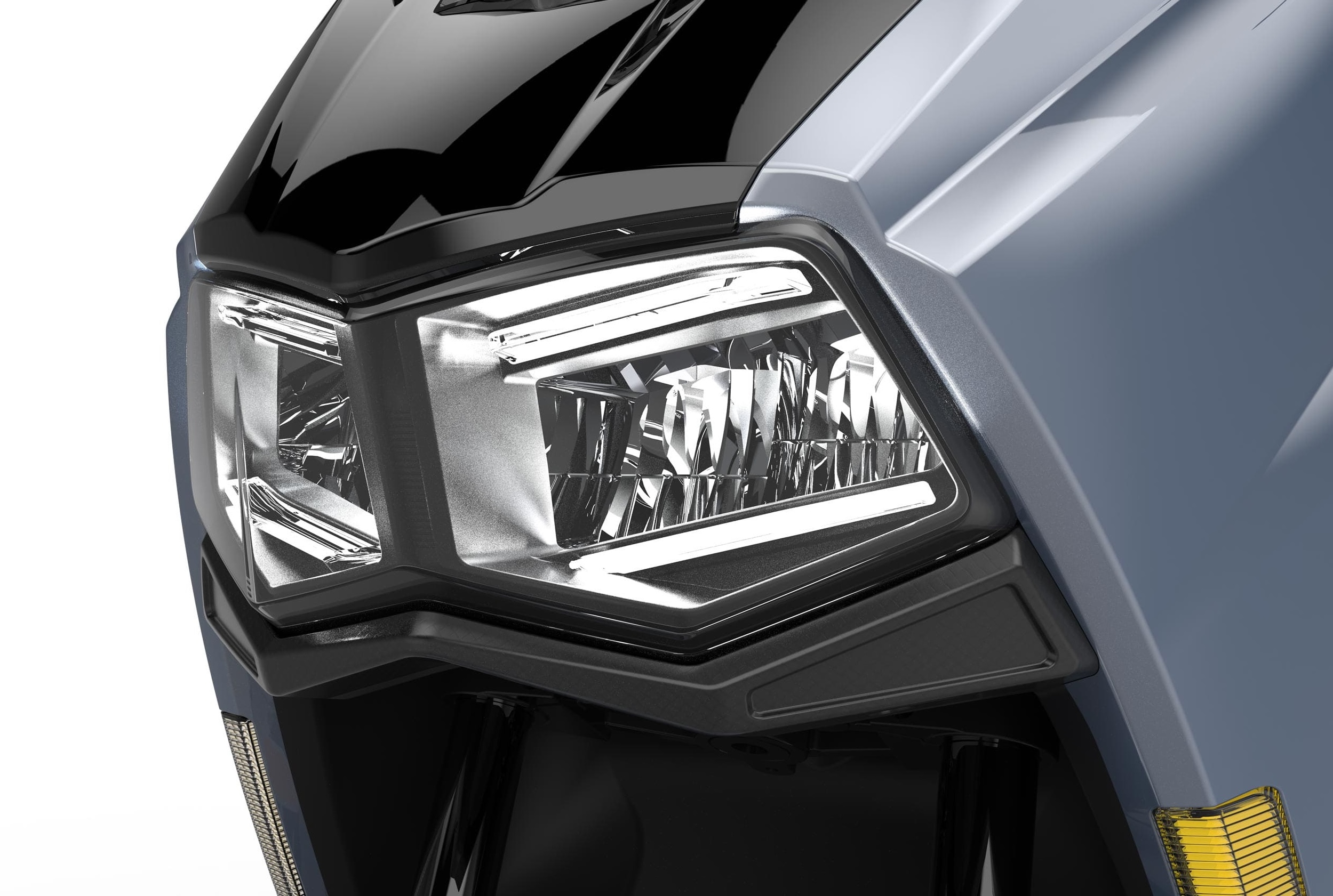 Designul SK3 Plus este agresiv, sportiv și în același timp practic. Fiecare detaliu a fost conceput pentru a sprijini aerodinamica și pentru a oferi maximul de confort riderului. Iluminarea LED pe toată caroseria asigură nu doar vizibilitate excelentă pe timp de noapte, ci și un aspect modern. Elementul central al panoului frontal este un afișaj TFT color de 7 inch, care afișează toate datele esențiale despre călătorie și starea bateriei. Funcția de comutare automată între modul de zi și cel de noapte contribuie la siguranță și confort. Echiparea include de asemenea sistem Keyless Go, port USB de încărcare, trei moduri de condus (Eco, Drive, Sport), marșarier, alarmă electrică, control central FOC și sistem CBS pentru frânare combinată. Scuterul este disponibil în mai multe culori: negru mat, gri metalizat și verde, fiecare versiune subliniind caracterul său sportiv-elegant.