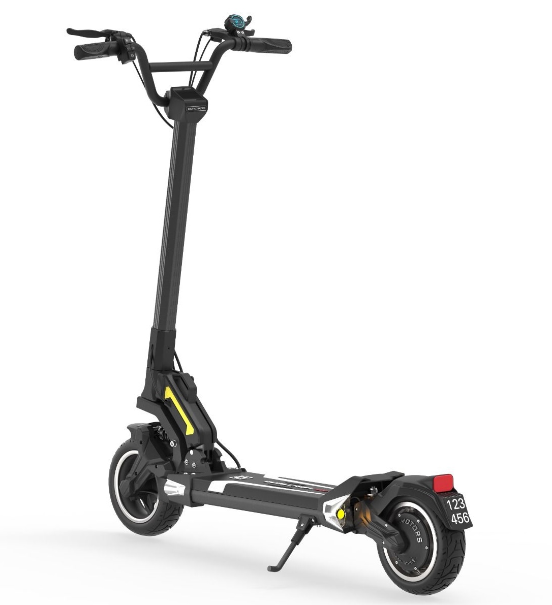 Dualtron Togo 2025 este conceput în principal pentru mediul urban, dar face față fără probleme și drumurilor periferice sau scurtelor ieșiri în afara asfaltului. Datorită mecanismului de pliere bine gândit, trotineta se pliază în câteva secunde și o poți pune sub birou, în birou sau o poți lua în transportul public. Cu o greutate de numai 22,8–24,4 kg și un mecanism de pliere solid, manevrarea este ușoară chiar și pentru utilizatorii mai puțin puternici. Capacitatea maximă de încărcare de 100 kg acoperă majoritatea scenariilor recreaționale și cotidiene. Versatilitatea este completată de compatibilitatea cu bara suport pentru plăcuță de înmatriculare preinstalată (conformă reglementărilor DGT pentru Spania), facilitând înregistrarea și circulația pe pistele pentru biciclete. Un bonus practic este spațiul destinat unei baterii suplimentare sau bagajelor mici, util pentru transportul accesoriilor sau documentelor. Trotineta este pregătită pentru utilizare zilnică: drumuri la serviciu, cumpărături în centru sau deplasări rapide între punctele orașului.