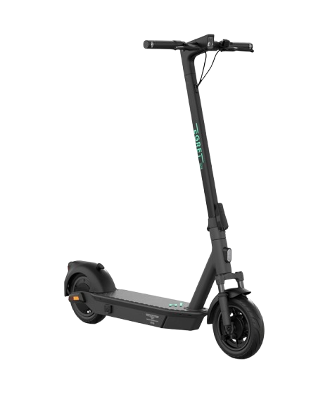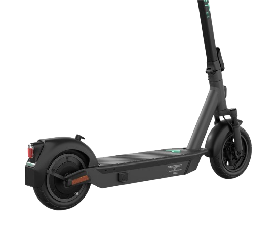 Trotinetă urbană premium cu putere 450 W / 902 W vârf, baterie 36 V / 15,3 Ah / 550,8 Wh, autonomie 55 km, frână triplă, anvelope tubeless de 10", protecție IPX5/67 și iluminare LED de top.