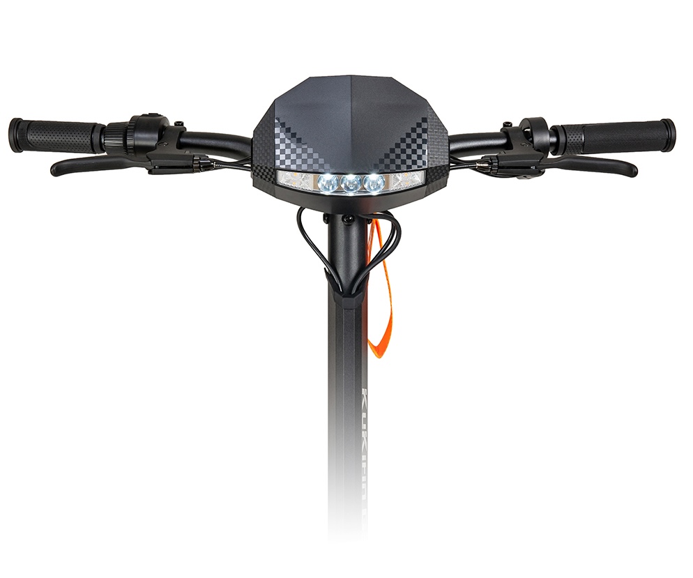 Securitatea este una dintre prioritățile principale ale KuKirin G3. Trottineta este echipată cu frâne pe disc față și spate, cu distanță de frânare ≤ 4 m, asigurând oprirea rapidă și fiabilă chiar și la viteze mari. Sistemul de frânare este proiectat pentru a oferi performanță optimă în diferite condiții de condus, inclusiv pe suprafețe ude. Iluminarea este completă – far LED frontal de 3 W cu unghi de 60° oferă vizibilitate suficientă, lumina de frână spate avertizează șoferii din spate și cele patru semnalizatoare sporesc vizibilitatea la viraje. Cu ghidonul de 660 mm, utilizatorul are o prindere stabilă și control mai bun în situații dificile. Cadrul robust din aliaj de aluminiu protejează împotriva deteriorării și oferă siguranță chiar și în teren. Combinația de frâne de calitate, iluminare puternică și construcție stabilă face din KuKirin G3 un partener sigur pentru condus urban și extraurban.