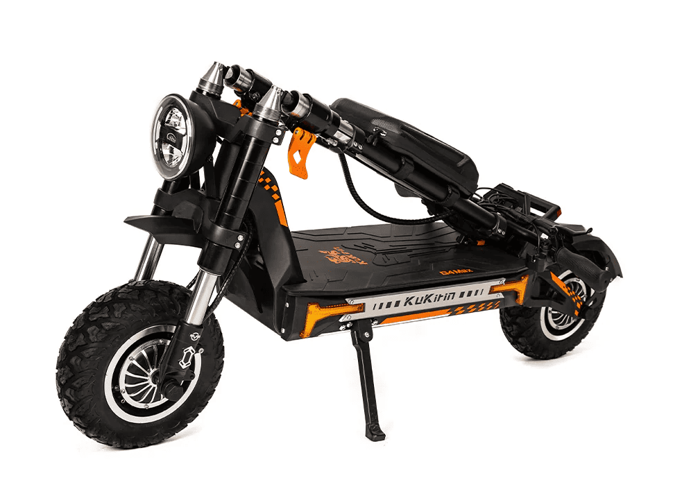 Descoperă KuKirin G4 Max: trotinetă electrică puternică cu două motoare de 1600 W, baterie de 60 V, autonomie de până la 100 km, frâne hidraulice și suspensie confortabilă. Creată pentru condiții extreme și pentru condus urban.
