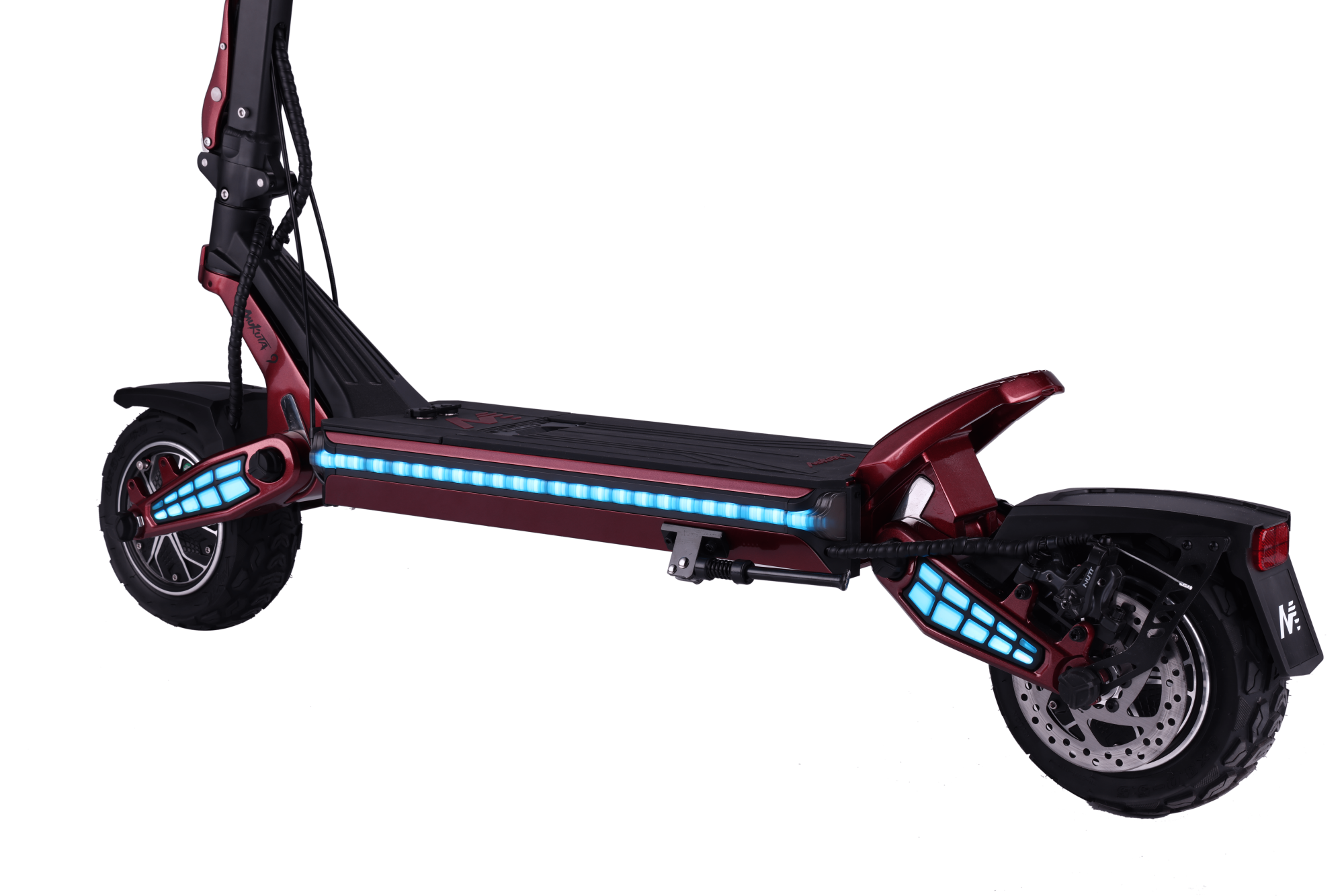 Deși este un model de oraș prin natură, este echipată cu echipamente care le permit utilizatorilor să se aventureze pe teren ușor fără griji. Există doar câteva modele cu roți de 9 inchi pe piață care combină o variabilitate comparabilă a focalizării cu caracteristici moderne și premium ale echipamentelor. Noua Mukuta 9 este o astfel de trotinetă, având un singur motor care oferă o putere de 800 W, cauciucuri gonflabile fără cameră și un design agresiv & negru-roșu intens. De asemenea, vine cu suspensie cu torsiune, o serie de caracteristici de siguranță, precum și capacitatea de a rula rapid și pe distanțe lungi. La urma urmei, viteza maximă de 44 km/h și autonomia de 70 km vorbesc de la sine.