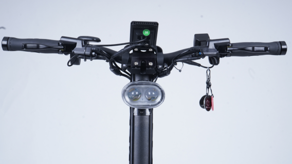 Privind cadrul lui Teverun Fighter Ten+, recunoașteți imediat designul semnăturii Minimotors. Marginile ascuțite ale componentelor caroseriei robuste din aluminiu de calitate, garantează o trotinetă rigidă și durabilă pentru o mare varietate de utilizări. Ca cutilizator, vei aprecia puntea mare pe care îți poți pune ambele picioare, unul lânga altul. În plus, puntea are o secțiune din spate ridicată care vă face și mai stabilă poziția de condus. Fiind un model proiectat pentru toate tipurile de drumuri, platforma sa este acoperită de un covoraș de cauciuc antiderapant. Cadrul continuă prin tija de direcție către articulația rabatabilă patentată. Se simte robust, motiv pentru care nu veți simți nicio balansare a tijei de direcție chiar și atunci când mergeți în afara drumului. Pentru a o plia, slăbiți singur maneta și atașați ghidonul pliat pe partea ridicată a punții. Partea superioară a tijei de direcție este dominată de ghidonele pliabile cu lățime de 65 cm, cu mânere ergonomice. Chiar în centru există un ecran TFT de 3,5 inchi dominant, care arată toate datele de călătorie și opțiunile de setare afișate într-un design grafic bine aranjat și modern. Pentru a „porni” trotineta, pur și simplu plasați cipul NFC aproape de cititor lângă mâna stângă. Mâna stângă acţionează, de asemenea, comenzile luminii, semnalizatoarele de direcţie şi claxonul. Mâna dreaptă controlează afișajul și modurile de călătorie. Deoarece Teverun Fighter Ten+ aparține familiei Minimotors, trebuie pur și simplu să vină în designul emblematic negru, cu elemente ambientale iluminate din spate pe tot cadrul său.
